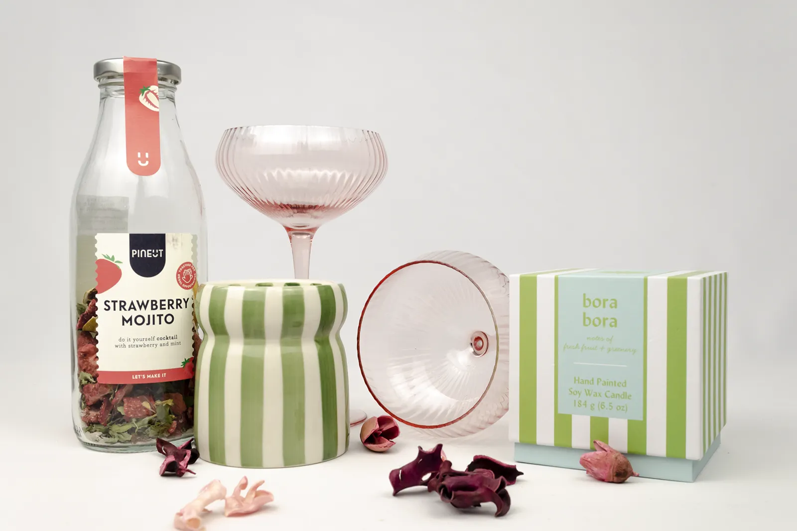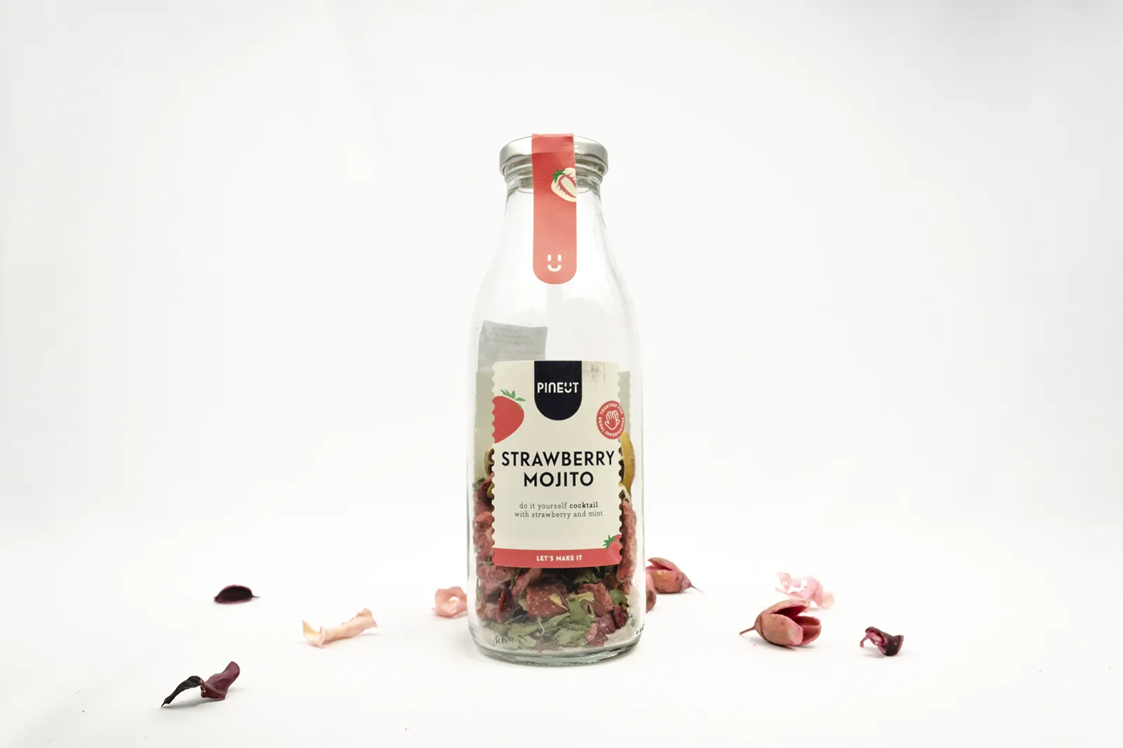 - Botella de Strawberry Mojito PineUt: Esta botella contiene una refrescante mezcla de fresas, menta y cítricos deshidratados, para que puedas crear tupropio mojito de fresa en casa. Podrás convertir cualquier ocasión en una fiesta espectacular.