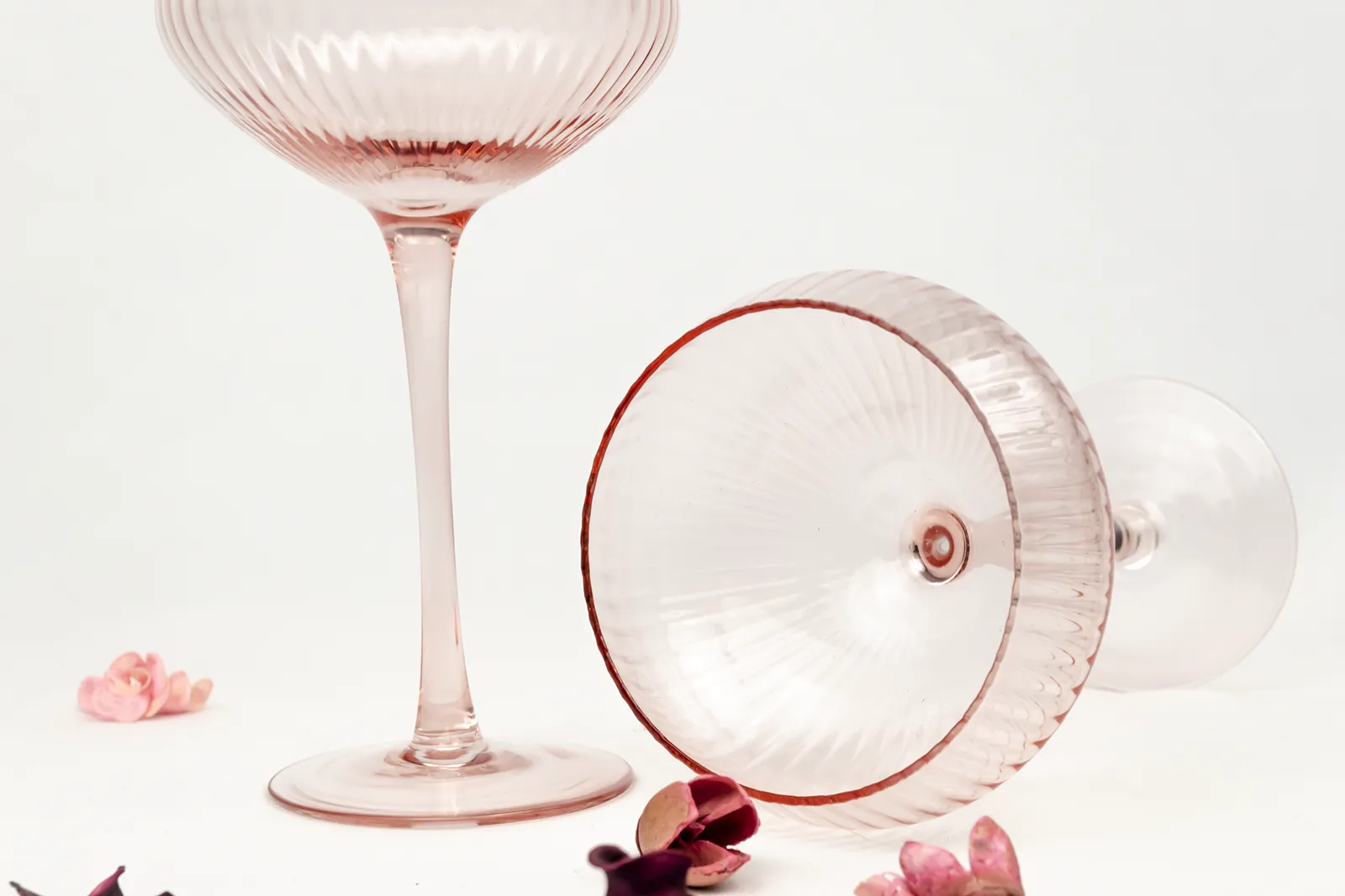 - Par de copas de vidrio "The Lou" - Here's How: Juego de dos elegantes copas de vidrio de 177ml, de color rosa y detalles elegantes para el cóctel definitivo.
